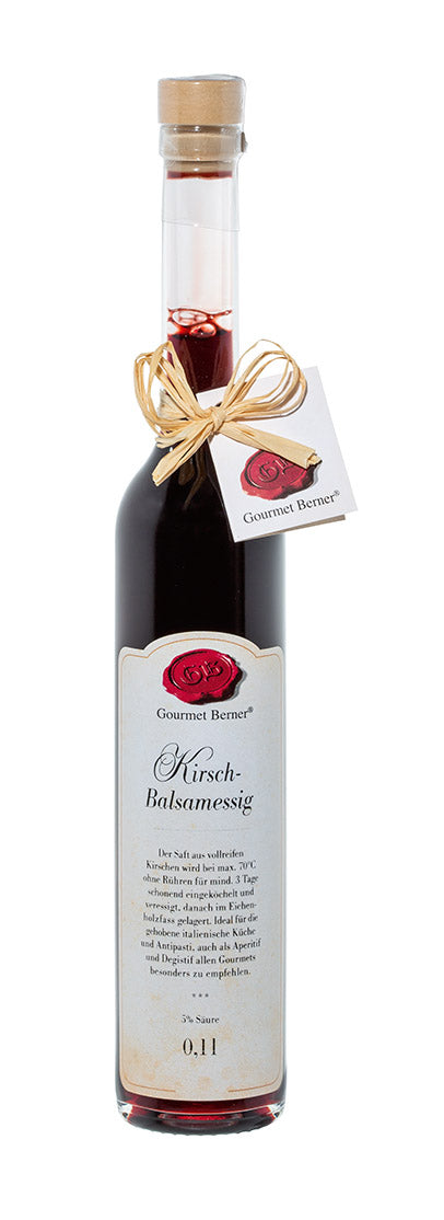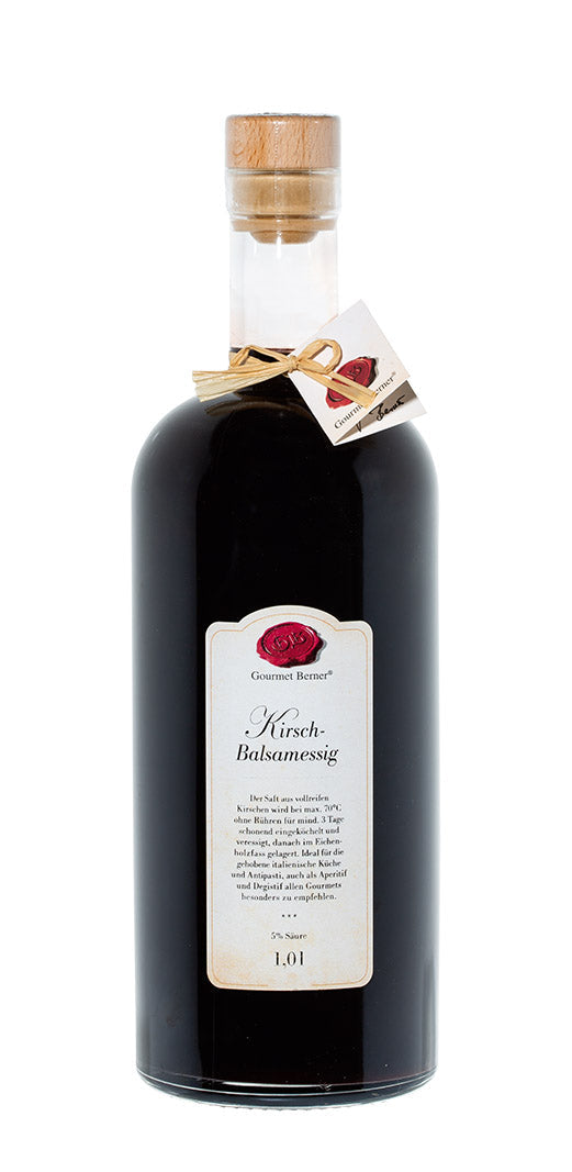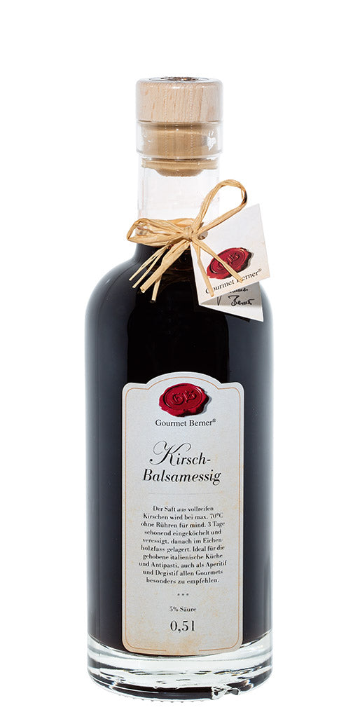 KirschbalsamessigKirsch Balsamessig, 5% SäureZutaten:Kirschessig, Kirschdicksaft, Glukosesirup.